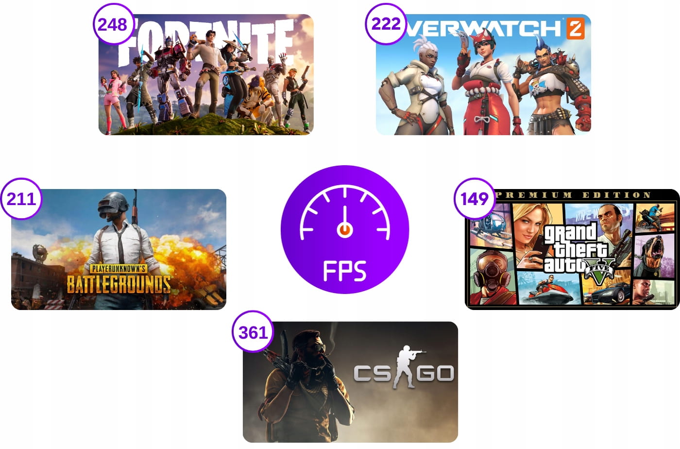 Wyniki w grach podane jako średni FPS (liczba klatek na sekundę) na maksymalnych detalach graficznych w FullHD: